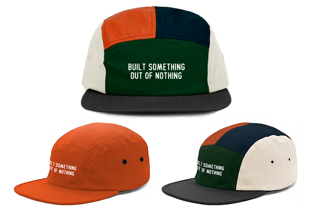 BrandのスローガンがプリントされたオリジナルパターンのUS made 5-Panel Camp Capです。
